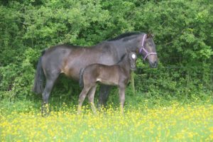 2016-05-23 Araminta 3wks old with Jcaranda CA stood under hedge